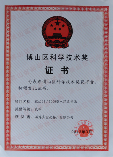 公司產(chǎn)品獲博山區(qū)科學(xué)技術(shù)獎