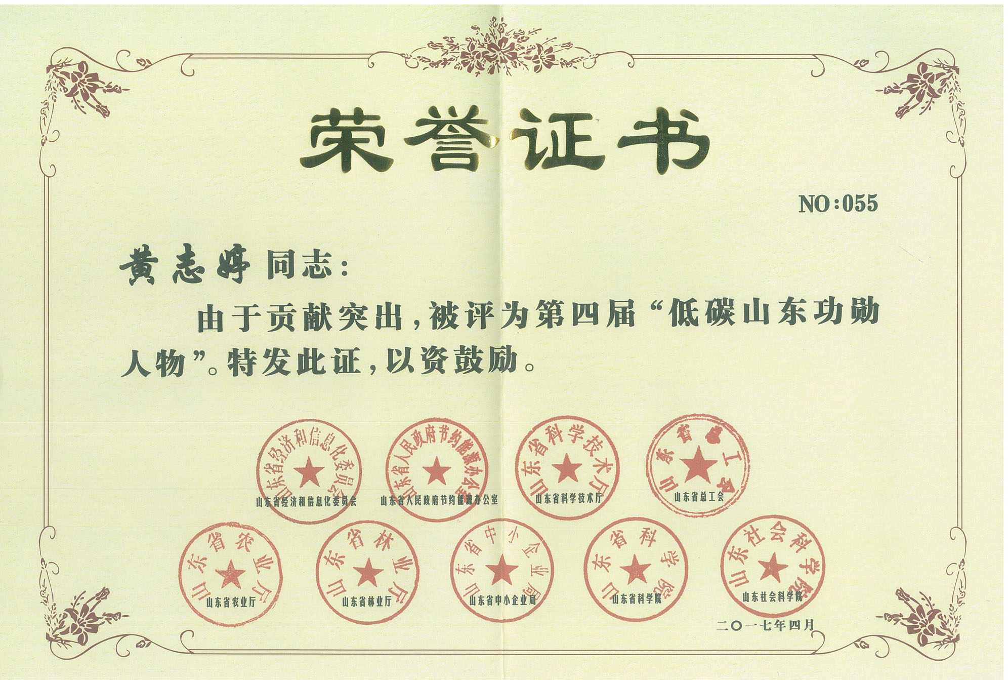 會(huì)上,黃志婷總經(jīng)理因貢獻(xiàn)突出,被評為第四屆“低碳山東功勛人物”,由省級領(lǐng)導(dǎo)授予獎(jiǎng)牌獎(jiǎng)?wù)?。這項(xiàng)殊榮的獲得,既是對黃志婷總經(jīng)理突出業(yè)績的肯定,也是對我公司產(chǎn)品在低碳節(jié)能減排方面的肯定。